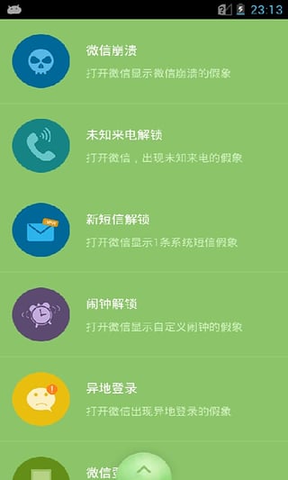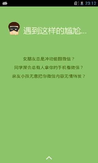 锁定微信是一款帮助微信用户解决隐私安全问题的伪装解锁软件,采用前沿的安全技术和人性化设计理念。优秀的界面设计不仅美观大方,更融入了巧妙的伪装元素,让保护过程不着痕迹。卓越的用户体验体现在每一个细节,从解锁方式到界面交互都经过精心打磨。有趣的微信伪装锁让隐私保护变得妙趣横生,谁动谁知道的设计理念让窥探者无功而返。看了只有好奇和纳闷的效果不仅仅是保护隐私,更重要的是让保护过程自然流畅。用伪装的方式让对方不觉的是密码锁,还避免了尴尬,只有你自己才知道个中的秘密,这种独特的保护方式让隐私安全变得既可靠又有趣。