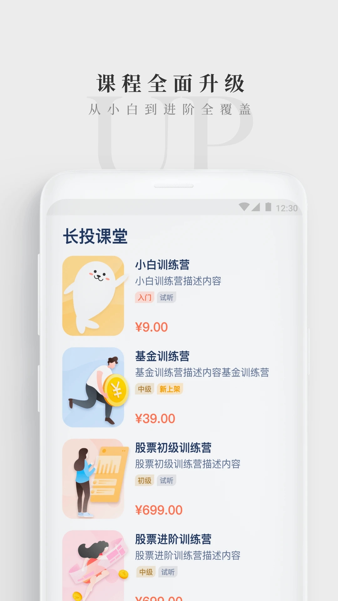 理财初级课程,包括基金训练营,股票初级训练营,实战课,适合有一定基础的用户提升实操能力。