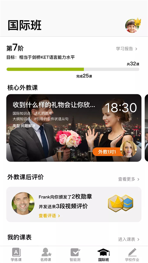 基于BOXFiSH教学法的全新互动课程:课程体系覆盖从零基础到高级水平的各个阶段,包括听说读写等全方位的上万课时内容。课程按照语言功能和话题进行分类,结合智能学习分析系统,为每位学生提供个性化的学习路径推荐。