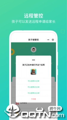 应用管控:家长可以精确控制孩子能够使用的应用程序,对于受限应用必须经过家长授权才能开启,同时可以设置单次使用时长和每日使用次数,实现精细化管控。