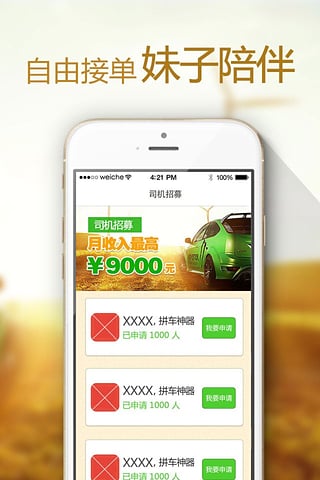 【更多选择】我们与多家专车、拼车、顺风车平台达成官方合作,为您提供最全面的司机招募信息,让您有更多选择权,找到最适合自己的平台。