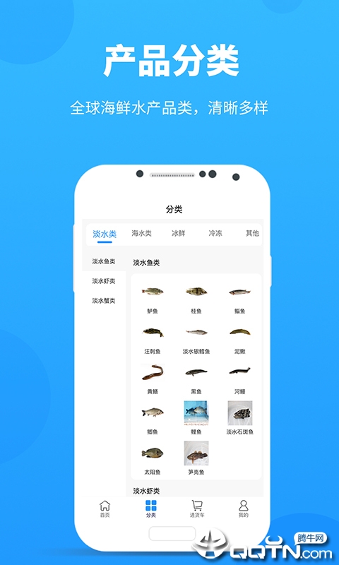 产品分类——全球海鲜水产品类,清晰多样,支持按产地、品种、价格等多维度筛选;