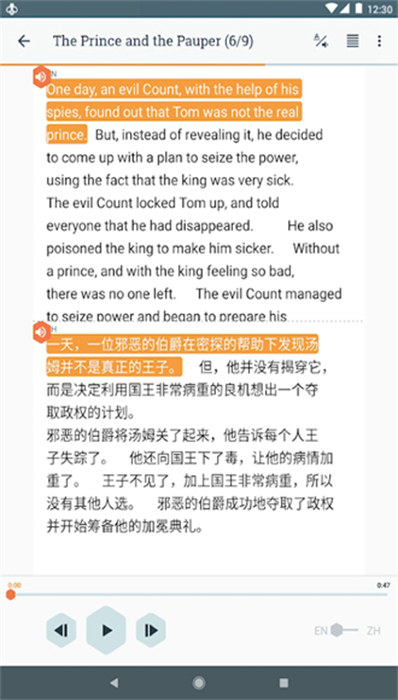软件界面设计简洁大方,操作逻辑清晰明了,即使是初次使用的用户也能快速上手。完全免费的使用体验让学习成本降到最低,同时保证无任何广告干扰。支持数十种语言的互译功能,满足不同用户的需求。独特的背景播放功能让用户可以在手机休眠状态下继续聆听学习内容。创新的卡拉OK式跟读功能通过动画引导用户正确发音,提升口语能力。丰富的学习资源库包含各类实用文本,帮助用户在真实语境中学习语言。