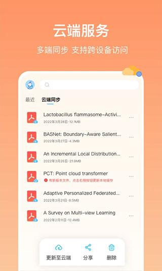 本地文件管理支持离线阅读,扫描功能可自动优化文档质量。云端缓存智能管理存储空间,重要文献可设置永久保存。新增批量导出功能,支持将多个PDF合并为一个文件。