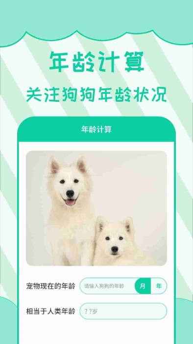 年龄换算:根据犬种特性智能计算真实年龄,提供对应年龄阶段的养护建议和健康注意事项。