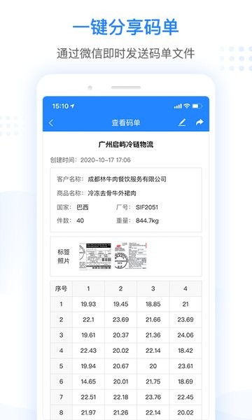 随时可以查询以往的抄码记录,能够及时的解决用户需要查询信息的需要。系统采用云端同步技术,确保数据安全不丢失。这里自动生成冷冻品的码单,完成抄码工作之后不用再次进行码单的整理,支持自定义模板设置。拿着手机可以随时随地的处理抄码的工作,能够提高用户的工作效率,特别适合需要频繁出入冷库的工作人员使用。