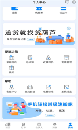 货葫芦是一款专为货物配送打造的智能物流软件,让您的运输需求变得简单高效。只需按照系统规划的路线行驶,即可确保货物准时送达目的地。任务完成后,系统会自动结算费用,支持随时提现,资金管理灵活便捷。即使更换设备,账户信息也能无缝同步,保障数据不丢失。软件还经常发放优惠券,帮您节省运输成本。此外,一键生成电子发票功能,满足企业及个人用户的多样化需求,让物流管理更省心。