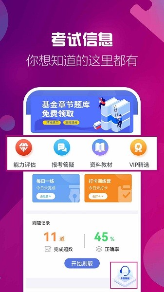 基金从业帮考题库免费版是一款专为基金从业资格考试打造的智能学习平台。该软件汇集了海量真题和模拟试题,覆盖基金从业考试所有重要考点,帮助考生系统性地掌握考试要点。通过智能刷题、模拟测试等功能,用户可以随时随地进行针对性练习,实时检测学习效果。平台还提供专业视频课程和学习答疑服务,让备考过程更加高效便捷。无论是零基础学员还是有经验的考生,都能在这里找到适合自己的学习方式,轻松应对基金从业资格考试。