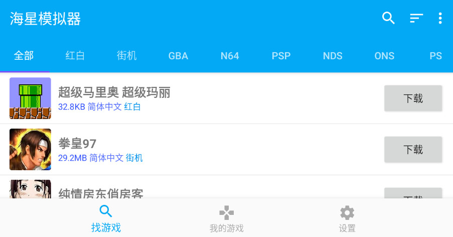 管理游戏更方便,下载控、收藏控的福音,支持云端同步游戏进度和收藏夹。按键布局,自定义设置按键位置使用更方便,还能保存多套配置方案。游戏中集成rom市场,点击下载即可开始游戏,资源丰富更新及时。支持金手指、一键大招、多重进度保存、外接手柄或键盘,给玩家带来更畅快的游戏体验。软件还提供成就系统和游戏时长统计,让怀旧游戏玩出现代感。