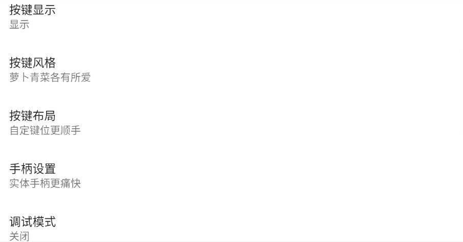 游戏音乐:可以设置关闭或打开游戏音乐,还能调节音量大小,打造个性化的游戏环境。按钮显示:自动显示,按钮操作更方便,支持透明度调节和位置微调。手柄设置:物理手柄的使用使模拟操作更加真实,完美还原街机手感。按键布局:自定义按键位置,使用更方便,支持多套配置方案保存。上传游戏:您可以将自己喜欢的游戏上传到软件中,与社区玩家分享。振动模式:您可以调整游戏的振动强度,强或弱,让游戏体验更具沉浸感。