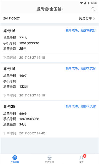 历史订单:店铺的历史订单信息都可以进行快速的查询,支持按时间、金额等多维度筛选,便于财务对账。