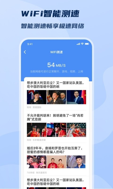 WiFi测速,时实掌握网速,提供详细的网络诊断报告,帮助您了解当前网络状况。