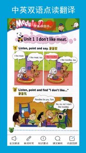 点读发音、中英文对照,点击英文单词会显示英文发音,再点击一遍则会显示中文翻译,支持单词重复朗读功能;全部播放,会进入当前页面的自动播放,用户可反复播放强化听力,并可调节语速适应不同学习需求;讲解,进入本单元的教学大纲,提示用户需要掌握的知识点及重点单词,配有生动形象的插图辅助理解;语法,会弹出本课于要掌握的语法内容,并有生动的例句分析、句型结构等重点,通过趣味动画演示语法规则;复习,是将课文的内容汇总,中英文直接对照朗读,支持重点句型高亮显示;单词训练,进入对应的页面,通过中文词组要求孩子拼写出正确的英文单词,系统会自动记录错误单词便于重点复习。