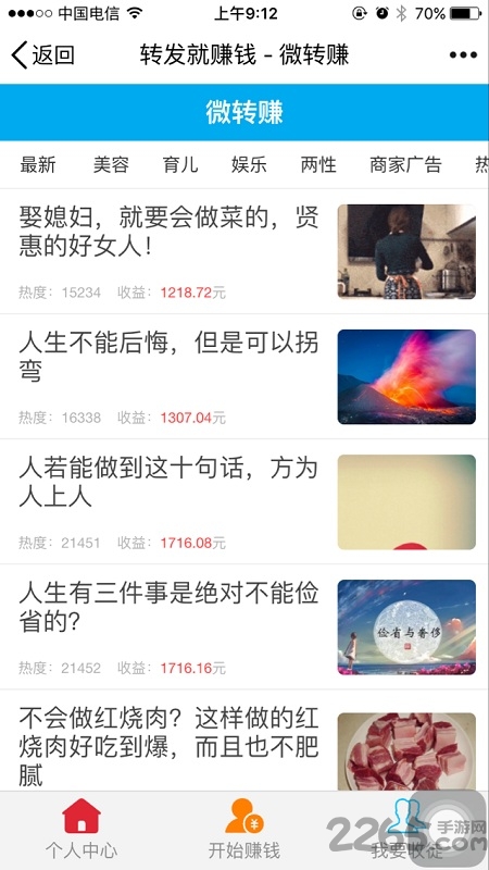3. 消息中心:推送新任务通知、收益到账提醒等系统消息。