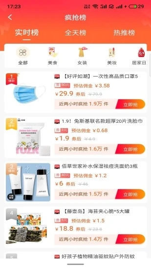 [疯抢排行] 每日更新全网爆款商品排行榜,精选9.9元包邮专区,涵盖日用百货、休闲零食、潮流服饰等各类商品,让您花小钱买好货。平台还特别设置了限时秒杀专区,每天都有不同品类的超值商品等待抢购。