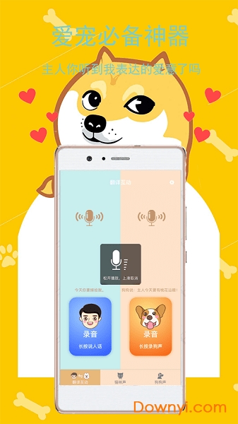 【人声翻译】将铲屎官的声音转化成狗语,让人狗交流更轻便,支持方言识别和语气调整;【养狗资讯】为您推送更多关于您爱犬的小知识,助您成为你一名合格的铲屎官,内容由国际认证兽医团队审核;【狗语翻译】将狗语翻译人话,让铲屎官更能体会爱犬的想法,准确率高达92%;【狗狗档案】记录您爱犬的生活,为它保驾护航,包括疫苗接种提醒、饮食记录等全方位管理。