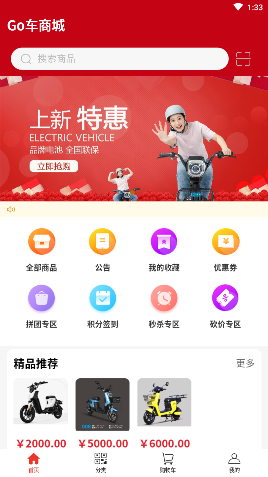 Go车商城以"优选好物,品质生活"为核心理念,精心打造了一个专为年轻消费者服务的高品位购物平台。在这个快节奏的时代,我们希望通过优质的商品和贴心的服务,让每一位用户都能在繁忙的生活中享受到精致购物的乐趣。平台不仅提供丰富的电动车选择,还特别注重用户体验,从商品展示到售后服务,每一个环节都力求完美,让购物变成一种享受。