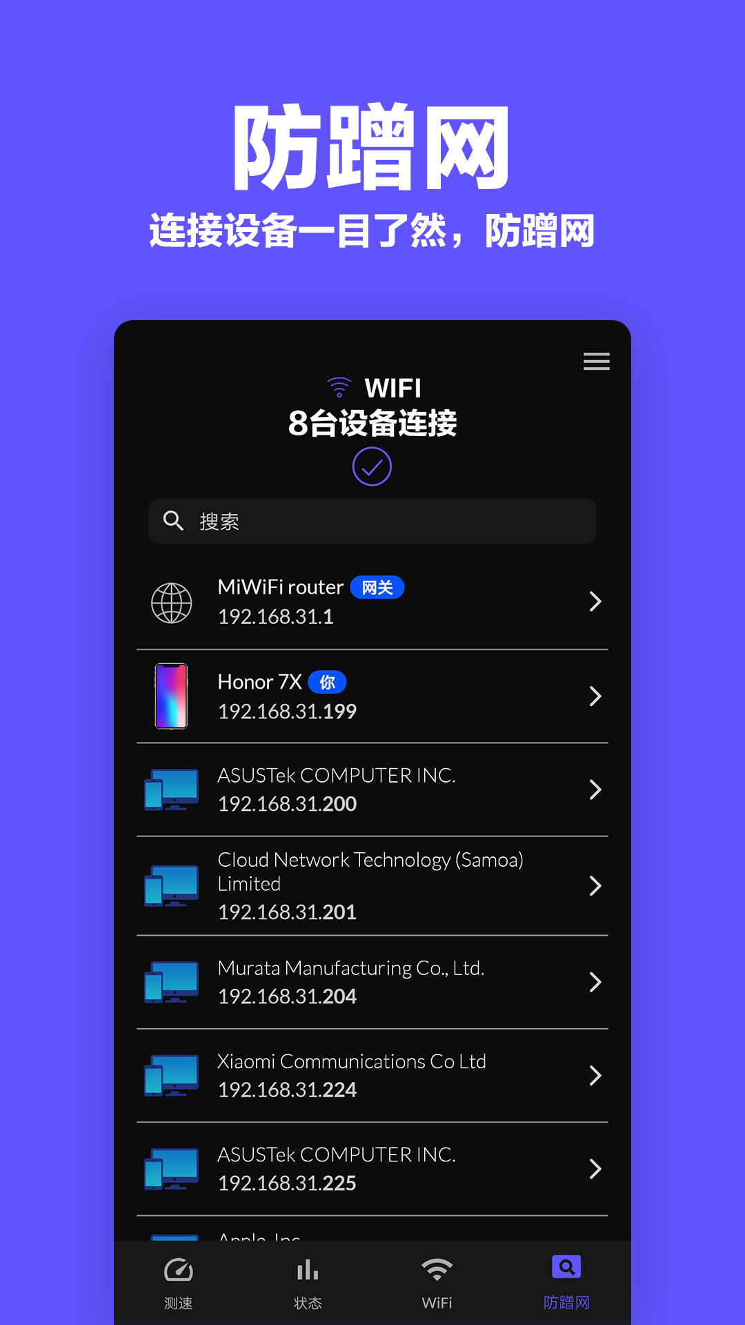 【防蹭网络】实时监控WiFi连接情况,自动踢除不明设备,防止他人蹭网,保护您的网络资源。