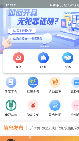我的常德APP是一款由常德市人民政府官方打造的综合性智慧服务平台,集政务办理与生活服务于一体。作为连接政府与市民的数字化桥梁,该应用整合了全市各类公共服务资源,通过智能化的操作界面为用户提供一站式解决方案。无论是查询实时路况、办理税务业务,还是获取最新政务资讯、参与党员学习,都能在这个平台上轻松完成。其创新的服务模式打破了传统政务服务的时空限制,让常德市民真正体验到"掌上办事"的便捷与高效,大幅提升了城市生活的幸福感和获得感。