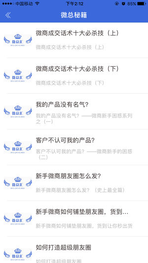 支持微商各大营销,销售技巧,微商培训课程,及朋友圈打造,手把手带你逆袭。从基础到进阶的完整课程体系,助力用户全面提升业务能力。