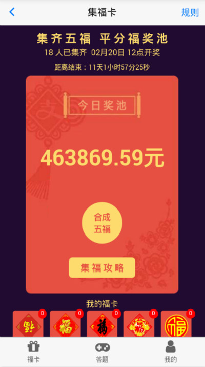 集福卡APP是一款融合答题竞技与集福乐趣的创新应用,为用户带来知识变现与社交互动的双重体验。这款软件巧妙结合了当下最热门的答题闯关和集福玩法,每天都有海量现金奖池等待瓜分。用户可以通过展示知识储备参与各类答题挑战,同时收集五福卡参与额外抽奖活动。无论是单人知识竞赛还是组队答题,都能让用户在轻松娱乐中收获实实在在的现金奖励,更有机会赢取万元大奖。