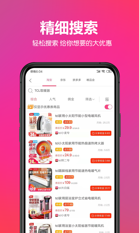 优惠券:汇集淘宝、京东、拼多多等平台的大额优惠券,部分商品折扣力度高达90%,让您享受意想不到的购物惊喜。