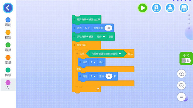 智能积木模块采用专利技术实现多重交互,除了基础遥控功能外,还能通过图形化编程控制传感器,甚至实现简单的人工智能应用场景。模块间采用磁吸式连接设计,兼顾安全性与扩展性。
