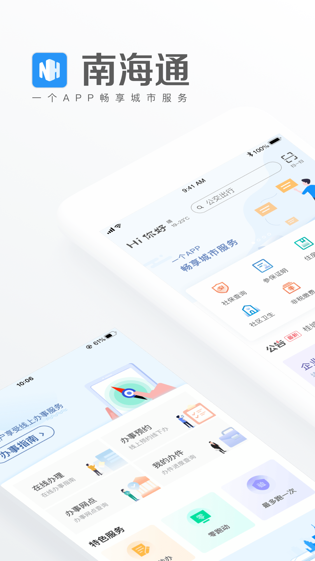"南海通"App是南海区政府重点打造的智慧城市服务平台,以"便民、利民、惠民"为宗旨,通过数字化手段整合全区政务服务和民生资源。平台汇聚了交通出行、生活缴费、文化教育、医疗健康等八大类百余项服务功能,实现"一机在手,办事无忧"的智慧生活新体验。