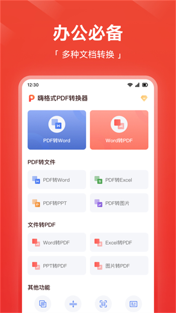 PDF转换器是一款功能强大的文档处理工具,专为移动端用户设计,能够轻松实现多种格式间的相互转换。无论是办公文件、学习资料还是日常文档,它都能提供高效便捷的解决方案。软件界面简洁直观,操作流畅,支持批量处理功能,大大节省用户时间。同时具备安全可靠的加密保护机制,确保文件隐私不被泄露,是提升工作效率的得力助手。