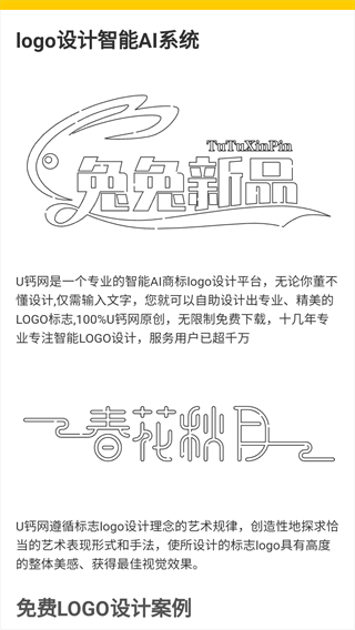 u钙网app是一款专为logo设计打造的智能工具,无论你是设计新手还是专业人士,都能轻松上手。通过先进的AI技术,用户只需输入简单的文字描述,系统就能自动生成专业且富有创意的logo图标。所有设计均为原创,完全不用担心版权问题。更令人惊喜的是,软件提供无限次免费设计,无需支付任何费用。无论是企业品牌、个人工作室还是活动标识,u钙网都能满足你的需求,让你轻松拥有独一无二的视觉标识。