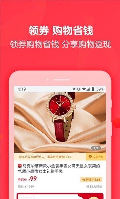 先领券再下单,上百家电商优惠券供您领取。真正做到了吃喝玩乐购,一站全享受。并且达到自购省钱、分享返佣的便民惠民服务模式。平台还提供专属会员等级制度,用户通过购物和分享可以提升等级,享受更多专属优惠和服务。