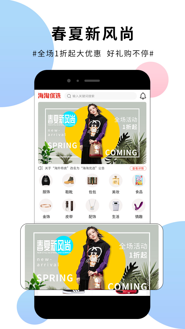 在这个追求品质生活的时代,海外特卖app为您打开了一扇通往全球时尚的大门。无论是最新潮流的服饰单品,还是限量发售的名牌包包;无论是精致优雅的珠宝首饰,还是实用高端的家居用品,在这里都能找到心仪之选。平台拥有数千万忠实用户,每天都有海量新品上架,满足您对品质生活的所有想象。特别值得一提的是,我们提供99元专区,让您用超值价格就能买到心仪好物,真正做到物超所值。
