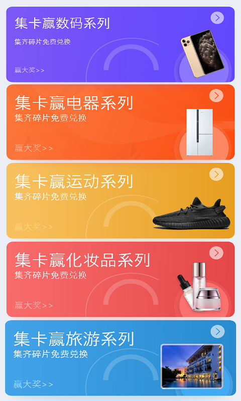 您身边可移动的免费(商品)库。最新版本优化了抽卡动画效果,使集卡过程更加流畅有趣。新增了限时卡池功能,特定时段会推出稀有卡牌和专属商品。同时改进了商品展示页面,支持360度查看商品细节,让您兑换更放心。系统稳定性也得到显著提升,确保每位用户都能享受顺畅的集卡体验。