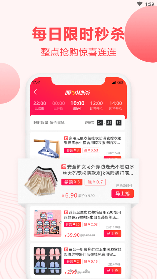 好货精品推荐买不停,还有每日整点限时板块!专属推荐更懂你,限时特惠不容错过