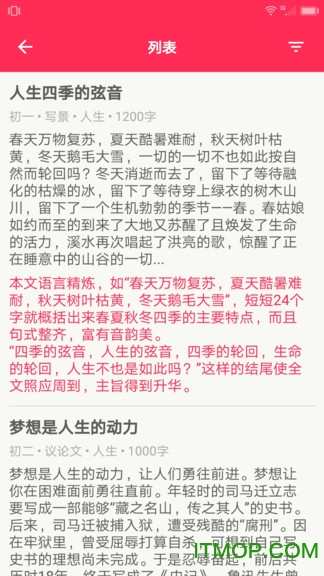 作文易app还在为写作文发愁吗?找不到优质素材,写作思路总是卡壳?作文易app将成为你提升写作能力的得力助手。这里汇集了海量精品范文,涵盖小学到高中各个阶段,每篇文章都经过精心筛选,语言优美、立意深刻。无论是日常练习还是考试备战,都能帮助你快速掌握写作技巧,轻松应对各类作文题目。更有智能分类和个性化推荐功能,让你的写作学习更加高效便捷。