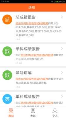 学校选择界面进行全面改版,优化用户体验;修复测试过程中发现的多项BUG,提升系统稳定性;调整单科成绩界面布局,使数据展示更加清晰合理;优化UI界面效果,提升视觉体验;答题情况中的得分率显示精度提升至两位小数;在通知和考试界面添加下拉刷新提示信息;解决部分手机个人界面无法显示姓名的问题;完善登陆和学校选择界面的输入框设置,限制输入20个字符以内。