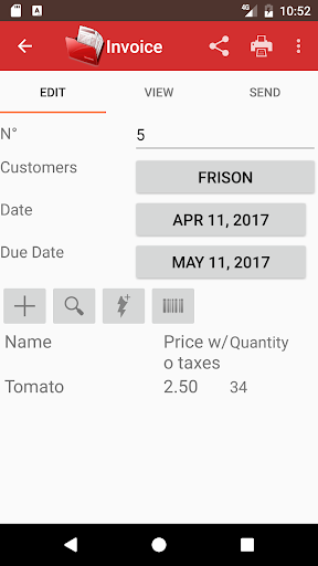 创建发票,订单,报价和学分,满足各种商务场景的需求。无限创造顾客和产品,建立完整的客户和产品数据库,方便随时调用。发票的定制:A4/信纸格式,更改发票上的标签,添加条款和条件,完全按照您的业务需求个性化设置。电子邮件份额,直接将发票发送给客户,节省沟通时间。是安全的:在你的SD卡或对谷歌驱动器云备份您的数据,确保重要财务信息不会丢失。您可以用条形码来选择速度更快的产品,大幅提升开票效率。打印支持,随时将发票打印成纸质文件。不同的货币的处理,轻松应对国际业务需求。设置折扣,灵活调整价格策略。管理paiement,完整记录每笔交易的支付状态。