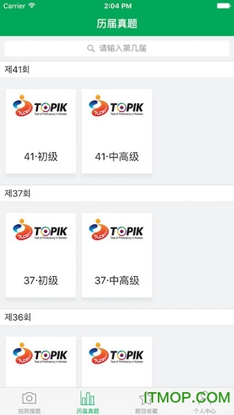 TOPIK搜题app是一款专为准备参加韩国语能力考试(TOPIK)的学习者量身打造的韩语学习辅助工具。这款应用汇集了海量历年真题资源,通过智能化的学习功能帮助用户高效备考,让您无论身处何地都能轻松进行韩语训练。应用采用科学的学习方法指导,从词汇、语法到听力、阅读、写作全方位提升您的韩语水平,助您顺利通过考试。现在就来it猫扑下载体验这款备考神器吧!