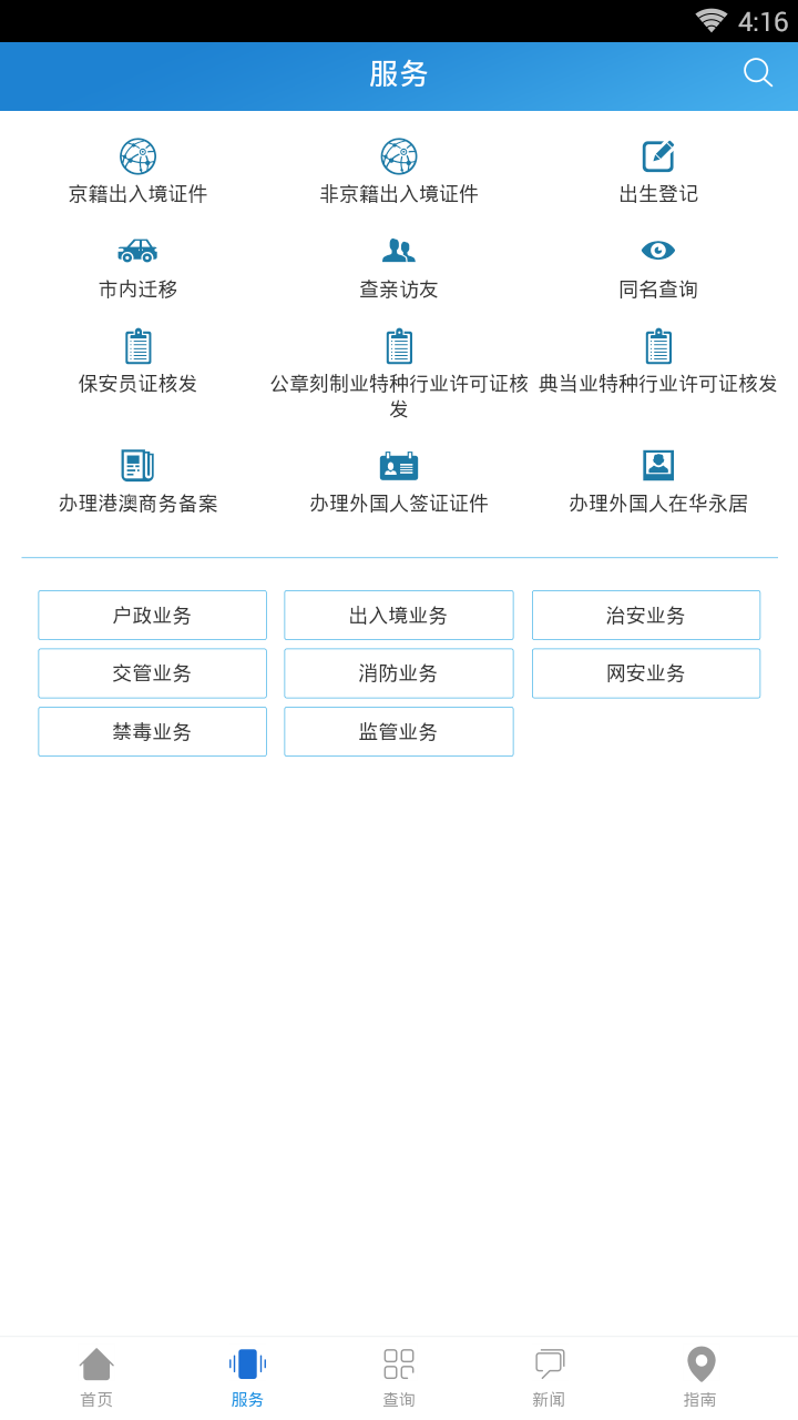 业务:包括车辆违章查询、驾驶证换领等交管服务