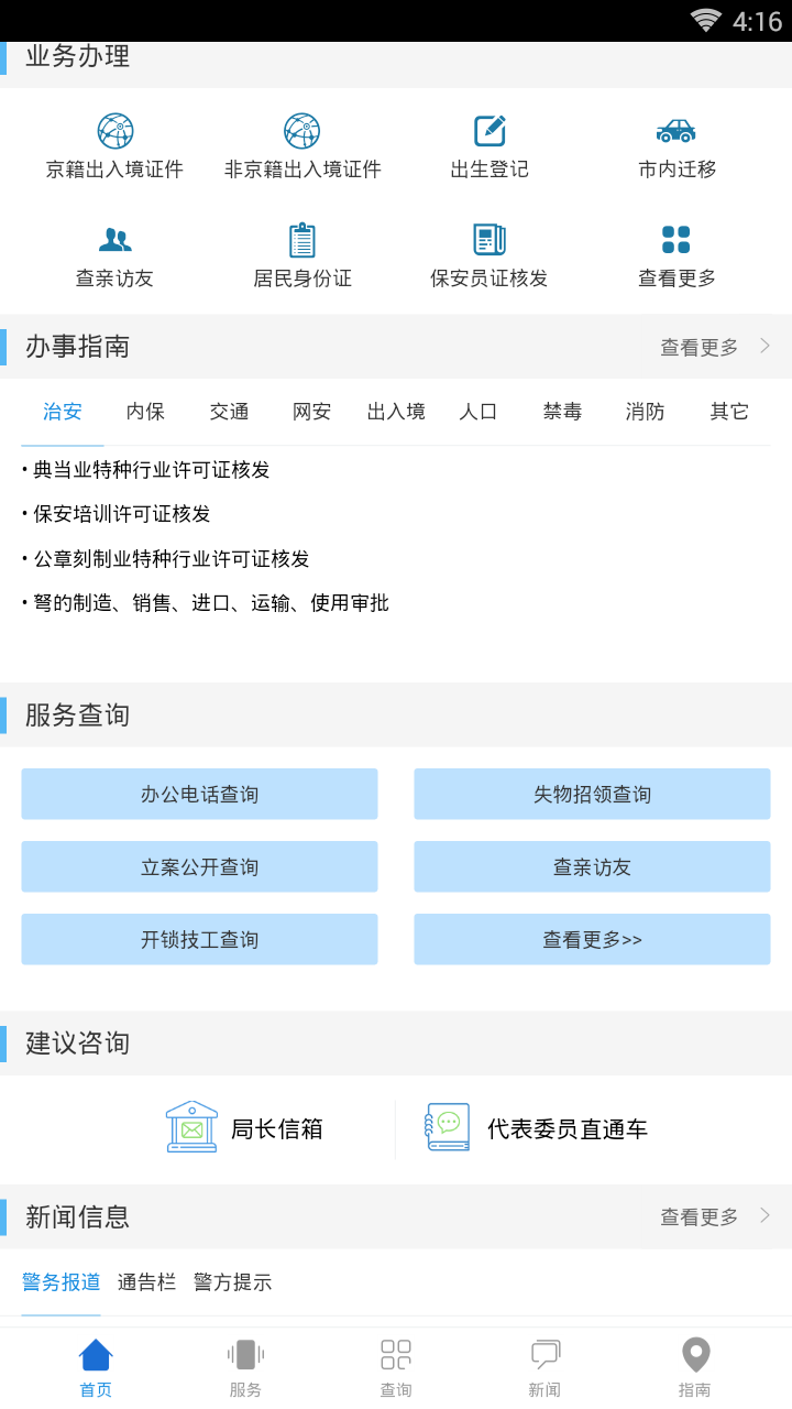 便民服务:整合了开具证明、寻人启事等多项实用功能