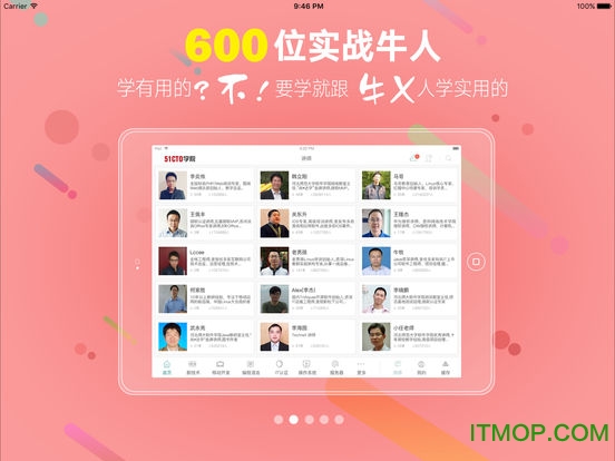51CTO学院专为IT从业者设计,包括计算机专业在读生、应届毕业生、1-3年工作经验的初级开发者、资深程序员、系统架构师等。采用MOOC式云课堂模式,让用户能够自主安排学习进度。