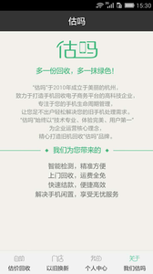 估吗app是一款专业的手机回收评估工具,通过多项专业指标为用户提供精准的二手手机报价服务。它能够根据手机版本、开机状态、外观成色、屏幕状况、剩余保修期、维修记录以及通话功能等关键因素,结合智能算法生成合理的回收价格。无论是想出售旧手机还是了解其市场价值,估吗都能提供透明、公正的评估结果,让用户轻松掌握设备价值,避免被低价回收的风险。