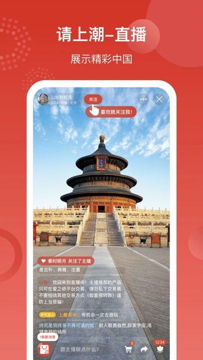 作为一款集"短视频、直播、电商、线上拍卖、主题社交、直播综艺"于一体的综合性平台,国风汇致力于推广中国传统文化与现代时尚的完美结合。平台不仅提供丰富的国潮商品,还定期举办传统文化主题活动,让用户在购物之余感受中华文化的魅力。在这里,你可以结识志同道合的朋友,分享购物心得,共同探索国风之美。