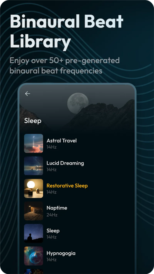 双耳节拍是一款专注于脑波同步与放松助眠的音频软件,通过科学设计的双耳节拍技术,帮助用户快速进入深度放松、冥想或专注状态。该软件提供多种频率组合的音频内容,涵盖睡眠改善、压力缓解、注意力提升等场景,支持自定义节拍频率和背景音效。简洁的界面搭配专业音效库,适合不同需求的用户群体,无论是失眠困扰者、冥想爱好者还是需要高效学习的工作者,都能通过精准的脑波调节获得身心平衡体验。