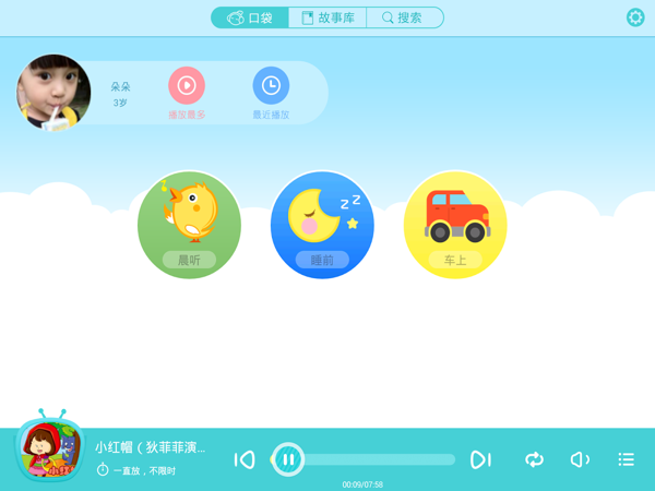 纯音频播放无屏幕干扰,支持15-60分钟定时关闭,保护儿童视力健康