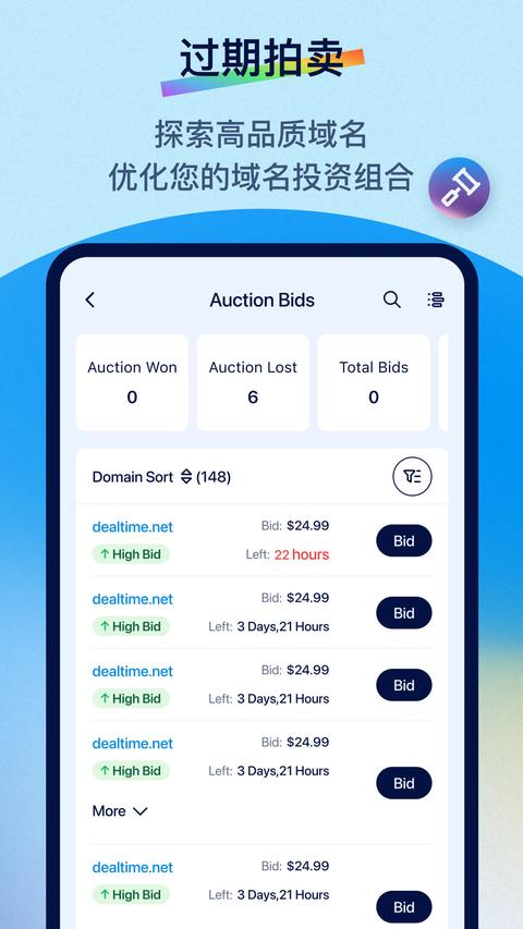 dynadot手机客户端是一款功能强大的域名管理工具,专为域名投资者、企业用户和个人开发者设计。通过这款应用,用户可以轻松查找全球各地的优质域名,完成注册、转移、DNS设置等操作。软件界面简洁直观,内置智能导航系统,支持批量域名注册和实时价值评估,帮助用户在拍卖市场中把握商机。无论是寻找热门域名还是管理现有资产,dynadot都能提供高效便捷的解决方案,让域名交易变得简单有趣。