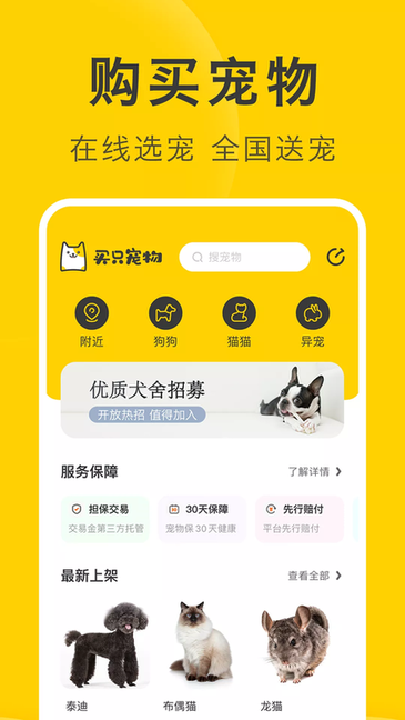 买只宠物是一款专注于线上宠物交易的创新平台,致力于为爱宠人士提供安全、便捷的购宠体验。平台汇聚了丰富多样的宠物种类,从可爱的猫咪、忠诚的狗狗,到独特的异宠如龙猫、仓鼠等,满足不同用户的养宠需求。所有入驻商家均经过严格资质审核,确保宠物健康与交易安全。平台定期发放优惠券,让用户享受超值购宠福利。无论是寻找陪伴型宠物还是稀有品种,买只宠物app都能为您提供专业的一站式服务,让每一份爱心都能找到理想的归宿。