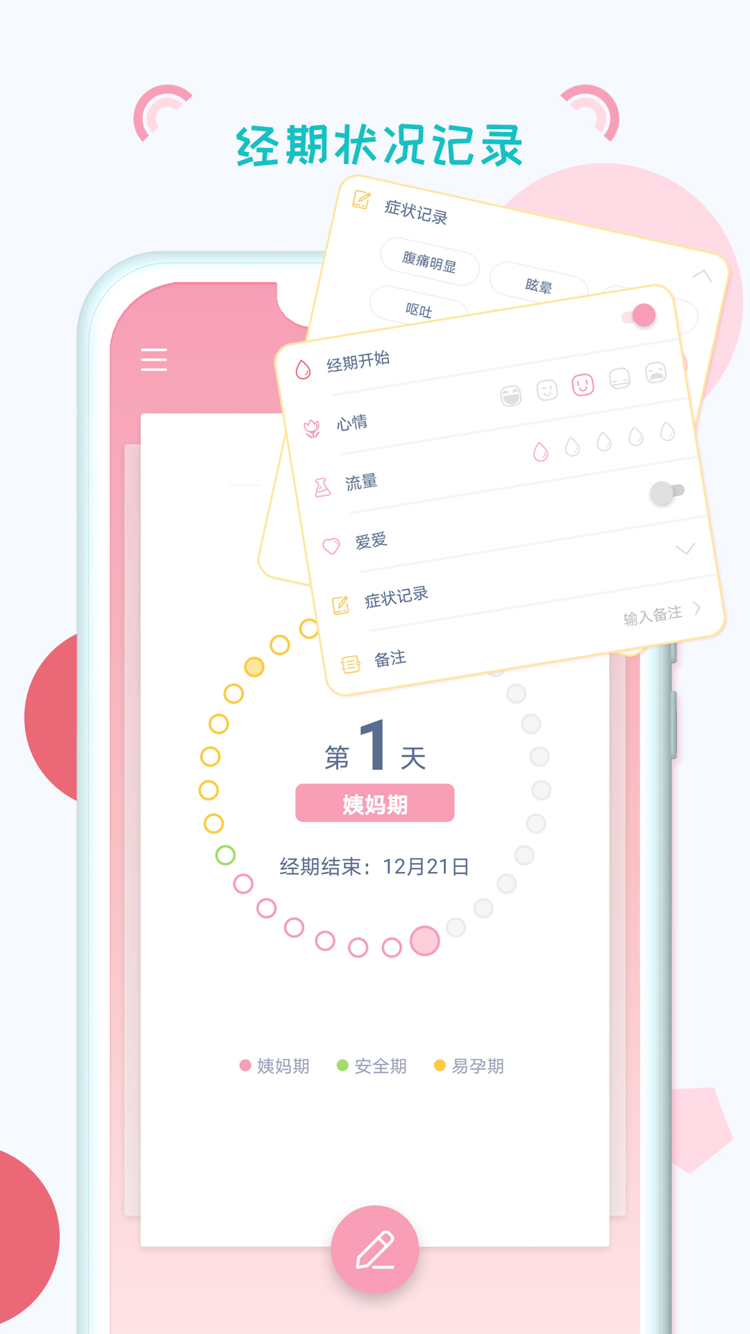 科学预测月经期、易孕期、排卵期,助你适时调整/避孕计划/做好经期准备。基于大数据分析的预测模型准确率高达90%,让您的生活安排更有预见性。