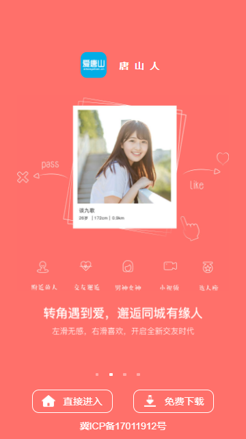 转角遇到爱,邂逅同城有缘人,左滑无感,右滑喜欢,开启全新交友时代。基于地理位置和兴趣爱好的智能匹配系统,帮助您找到最合适的交友对象。严格的实名认证机制,确保交友环境安全可靠。