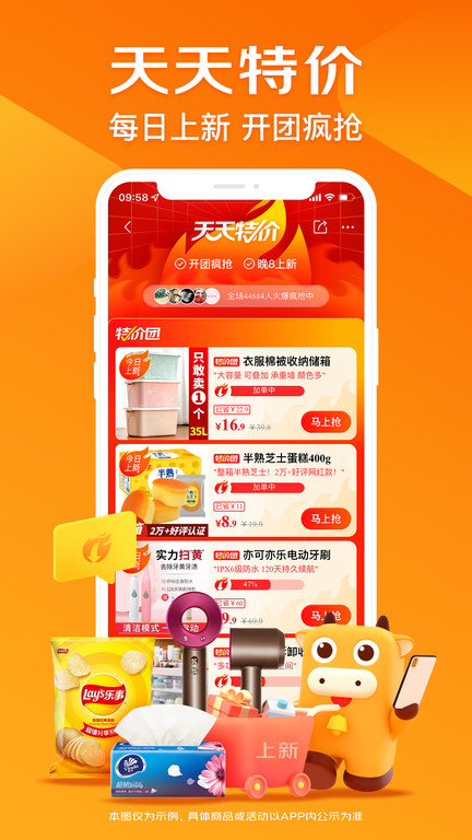 京喜"9.9元拼"专区汇集了食品、母婴、服饰、家居、数码等十余个品类的精选商品,所有商品价格均不超过9.9元,且享受包邮服务。专区每天更新百余款商品,满足您的日常购物需求。超低价格搭配京东物流配送,让您享受超高性价比的购物体验。
